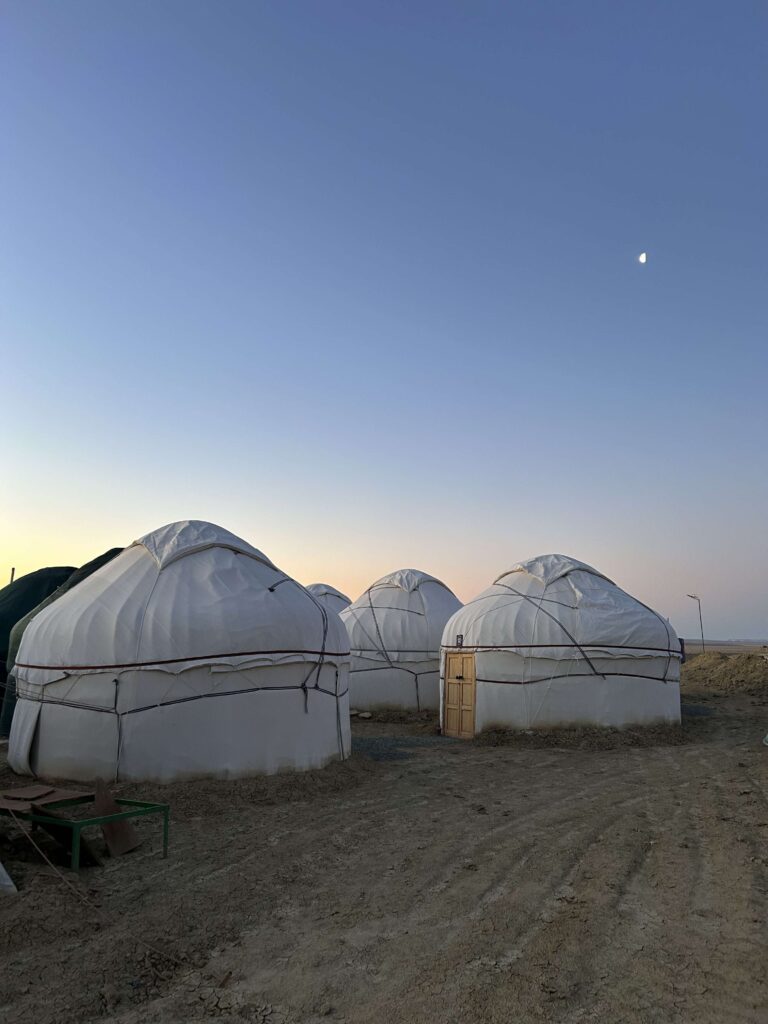 Krížom cez vyschnuté pláne sme sa predsa dostali aj k jeho brehom a videli more teda to čo z neho ostalo. Do pár rokov už nebude ani to. Prespali v tradičnej jurte s posteľami, ktorá je prispôsobená našim štandardom. Kombinácia pohľadu na zapadajúce Slnko, divokú krajinu a počas spánku úžasný čerstvý vzduch bez svetelného smogu nám doprial ten najlepší spánok. S týmito a podobnými slovami sme sa zobudili ráno všetci v skupine. No radosť cestovať 🙂