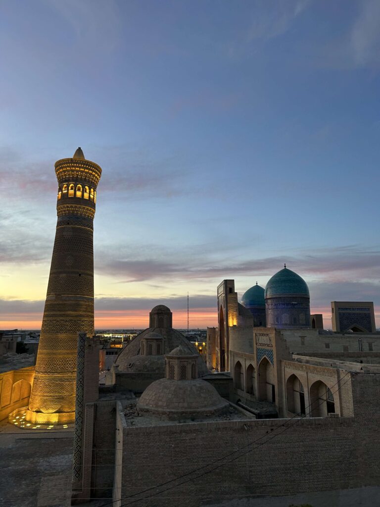 Ďalším cieľom spomínaná Buchara, niekto by povedal že opäť podobné orientálne mesto no to ani z ďaleka. Z terás sme sledovali krásne západy Slnka s pohľadom na medresy a minarety s krásnym odrazom uzbeckej modrej (asi tak by som nazval tu nádhernu farbu na všetkých budovách) no a spleť uličiek, kde sa cítiš ako v historickom filme. Poslednou bodkou za orientom bola Chiva. Najmenej navštevované mesto zo všetkých spomenutých, preto tu budeš mat pocit ako Marco Polo. Do tejto krajiny sa oplatí vycestovať kým tu nebudú väčšie davy turistov.