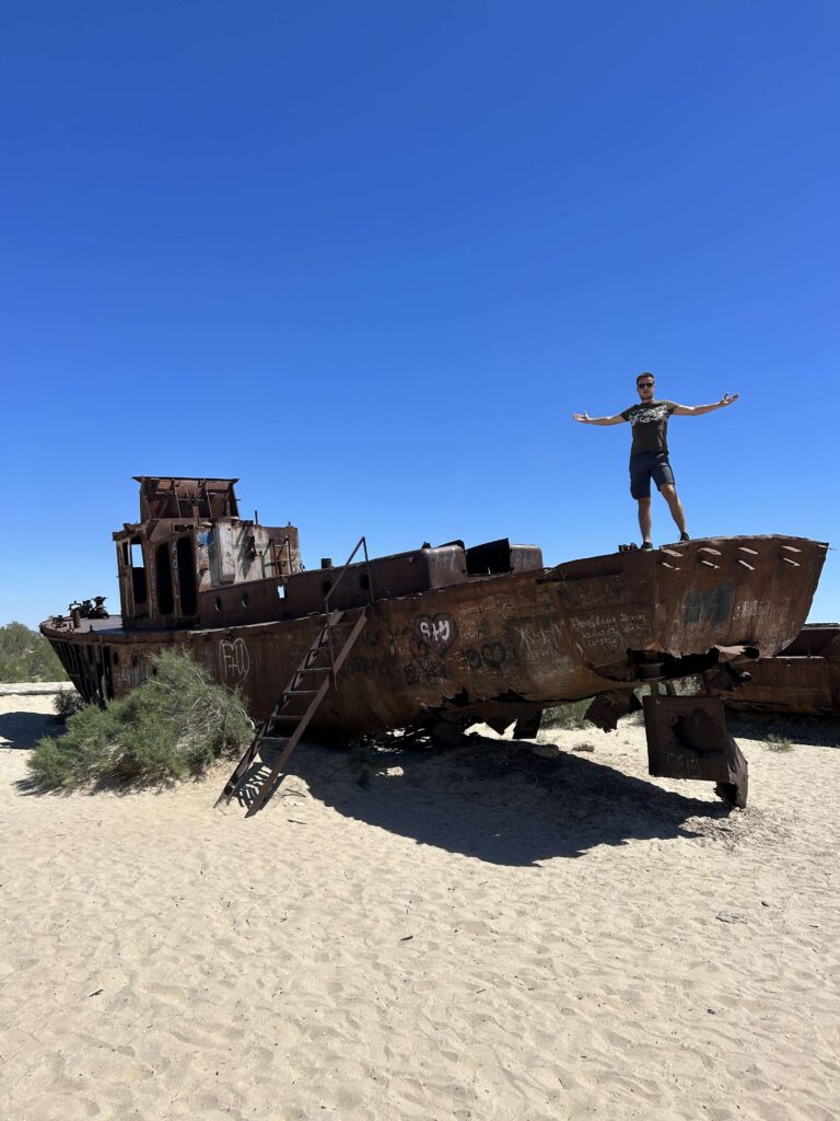 Záver tripu sme poňali mierne expedične a na 4×4 autách sme nakukli aj do autonómneho Karakalpakstánu, kde na nás čakala jedna z najväčších ekologických katastrof. Vyschnuté Aralské more z ktorého zostali len dva tenké „slíže vody na mape”. Niekdajšie centrum rybárskeho priemyslu a prístav v Moynaqu. Dnes ho pamätajú už len domáci a starý cintorín lodí, ktorý by zapadol ako rekvizita do filmu Mad Max. Nenájdeš tu už ani prístav, ani ryby a more už vôbec to je vzdialené desiatky kilometrov.