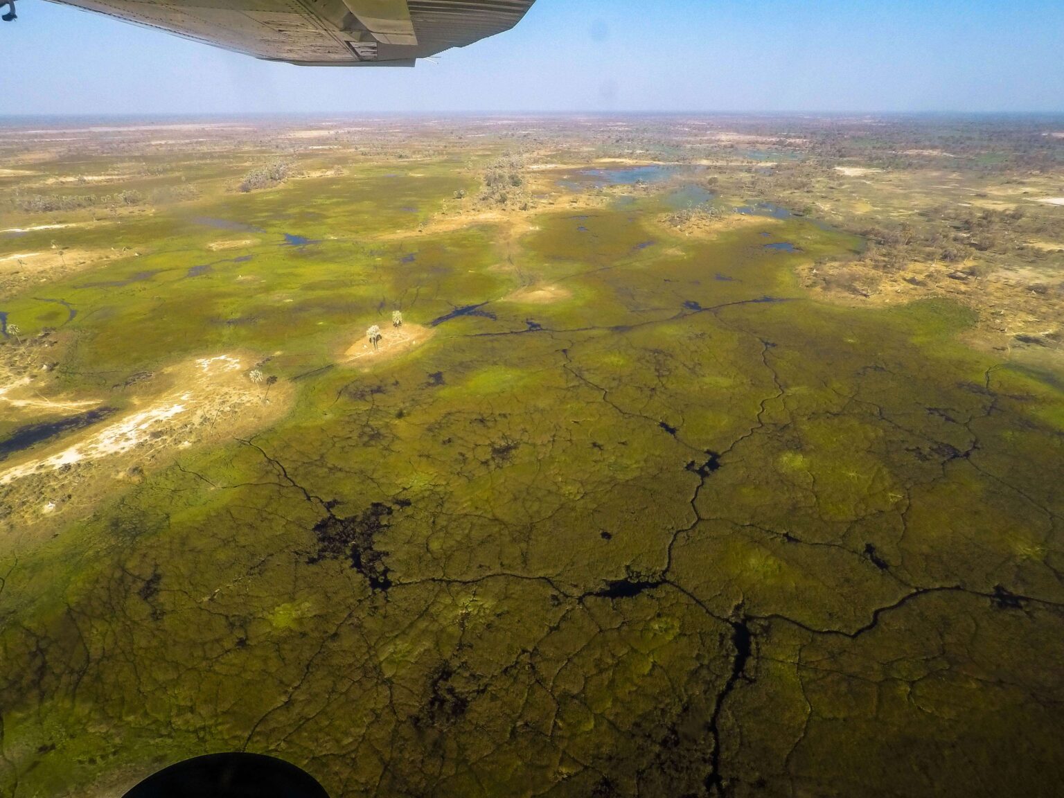 Hneď po príchode do Maun sme sa vybrali na letisko, aby sme si zabookovali malé lietadielko a preleteli ponad slávnu deltu rieky Okavango. Delta Okavanga je jedinečná tým, že je to jediná vnútrozemská delta rieky na svete (aspoň podľa toho, čo viem). Hektolitre sladkej vody sa strácajú v púšti Kalahari, no ešte predtým za sebou zanechávajú bažiny, močiare a veľmi úrodnú a zelenú krajinu – raj pre zvieratá. A pre nadšených cestovateľov. Podarilo sa nám vybaviť 6 miestny letúň a naše vzdušné dobrodružstvo sa mohlo začať.