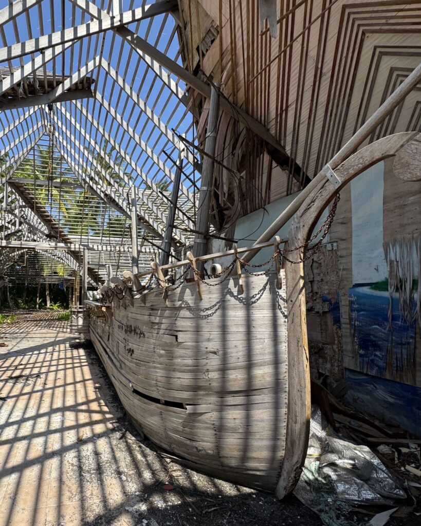 Okrem nás tam bol len muž z Bangladéša, ktorý na opustený rezort dohliada. Žije tam už viac ako 10 mesiacov a dostáva za to plat. Keďže angličtinu nemal najlepšiu, dorozumievali sme sa rukami-nohami, a ochotne nám ukázal všetko, čo sa tam nachádzalo. Najskôr sme sa dostali k baru v tvare drevenej lode, ktorý mal v úložných otvoroch miesto na víno. Nejaké fľašky tam ostali, ale už bohužiaľ prázdne.😁 Pokračovali sme ďalej a natrafili sme na bungalovy, kde bolo naozaj všetko – postele, skrine, matrace, zrkadlá… Každý bungalov mal svoju terasku a v okolí sa nachádzala len nádherná príroda. Narazili sme aj na mešitu, ktorá je súčasťou každého ostrova na Maldivách, keďže ide o moslimskú krajinu. Ďalej sme objavili práčovňu s obrovskými práčkami a sušičkami – všade sa váľalo posteľné prádlo. Ani len nedoprali, chápete to?🤔