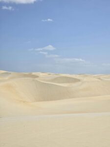 Deň začneme dobrodružstvom v Namibskej púšti (Namibe Desert) pri Atlantickom oceáne. Oblasť je známa obrovskými dunami až do výšky 300 metrov, skalnatými planinami a riedkou vegetáciou. Navštívime unikátnu rastlinu Welwitschia Mirabilis, ktorá sa vyskytuje len v púšti Namibe a rybárskom meste Tombwa. Objavíme aj skrytý klenot itinerára – malebný kaňon Camilunga. Pokračujeme k zlatým dunám, kde uvidíme fascinujúce spojenie mora a púšte – unikátnu scenériu Namibe. Navštívime vrak lode Vanessa a oázu Arco Lagoon, ktorá vznikla pri rieke Rio Curoca a je známa charakteristickými pieskovcovými oblúkmi. Hoci jazero je v súčasnosti vyschnuté, miesto je stále veľmi fotogenické. Prespíme v tábore priamo v púšti.