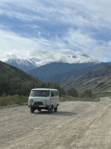 Prechod z mesta Turkestán do Schymkentu a to zdieľanými autami. Po ceste sa zastavíme pri ďalšej stope hodvábnej cesty a to v Arystanbabe. Mauzóleum akoby pohodené v polopúštnej krajine, za to s bohatou históriou a posvätnou atmosférou. Ak bude čas zastavíme sa pri starovekej ruine mesta Otrar a v jaskynnej mešite. Následne prejdeme do tretieho najväčšieho mesta Kazachstanu. Schymkent, tu ako by zastal čas. Úplne iná architektúra a zrazu menej moderných prvkov. Našim hlavným cieľom bude miestny bazár, ktorý je jedným z najautentickejších v centrálnej Ázii. Spleť uličiek s tovarom rôzneho druhu. Lokálne, voňavé a čerstvé. V sezóne tu nájdeme množstvo ovocia, cukroviniek a perfektný syr. Celkovo však nás úplne pochytí atmosféra tohto miesta.