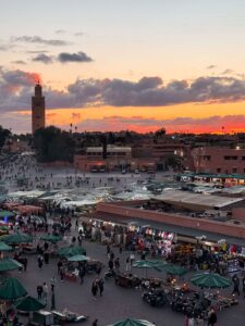Po tradičných marockých raňajkách vyrazíme z Marrakesha k jednému z prírodných divov krajiny – vodopádom Ouzoud. S výhľadom na majestátny vodopád si po prvýkrát vychutnáme marockú kuchyňu a ochutnáme jedlá ako tajine, kuskus či tanjiu. Popoludní sa vrátime späť do Marrakesha, kde nás čaká návšteva historického centra mesta. Zavítame na ikonické námestie Jemaa el-Fna, ktoré už po stáročia pulzuje svojím jedinečným životom. V tomto chaose plnom farieb a vôní si vychutnáme čerstvý pomarančový džús, budeme svedkami pouličných vystúpení hudobníkov, zaklínačov hadov či tanečníc a naplno precítime atmosféru tohto miesta. Neskôr sa ponoríme do spleti úzkych uličiek starej mediny, kde nás pohltí pravá tvár Marrakesha - chaos, hluk, vôňa korenín, umenie vyjednávania. Možno sa aj s úsmevom na tvári prirodzene stratíme v jej orientálnom labyrinte. Deň zakončíme večerou pri mešite Koutoubia, architektonickej dominanty Marrákeša, ktorá je nielen symbolom andalúzskeho štýlu, ale aj vzorom, podľa ktorého sa stavali ďalšie významné mešity v regióne.