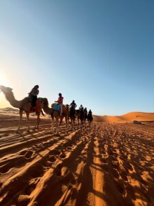 Ráno sa vydáme na dobrodružnú jazdu v jeepoch, počas ktorej preskúmame okolie Merzougy. Následne nás bude čakať vzrušujúca jazda štvorkolkami, kde si vychutnáme adrenalínový zážitok na vrcholkoch pieskových dún. Podvečer, pri západe slnka, sa usadíme na ťavy a vyrazíme na jazdu púšťou, ktorá nám poskytne nezabudnuteľný pohľad na zlaté piesky. Noc strávime v typickom berberskom kempe, kde si vychutnáme ticho púšte a nádherné výhľady na hviezdnu oblohu.